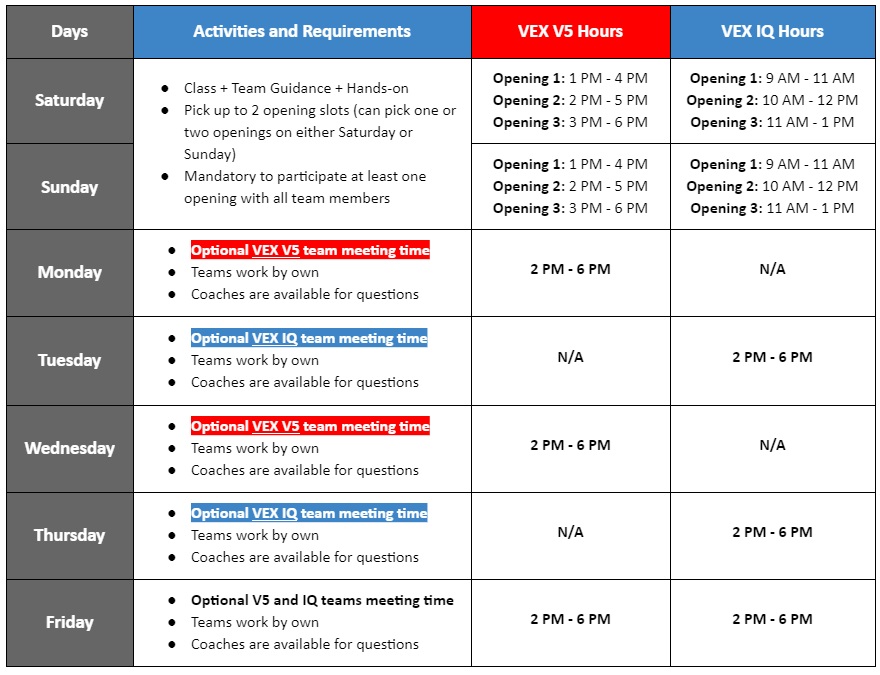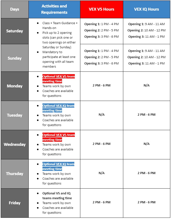 All prospective students must finish the Vinci VEX V5/VEX IQ Basics and Advanced classes to qualify to join our competition teams.