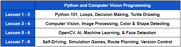 Learn how to program Computer vision programs with Python and try fun programming applications of OpenCV. Multiple comprehensive interactive programming activities, sensors, and challenges to teach robotics programming from zero experience.